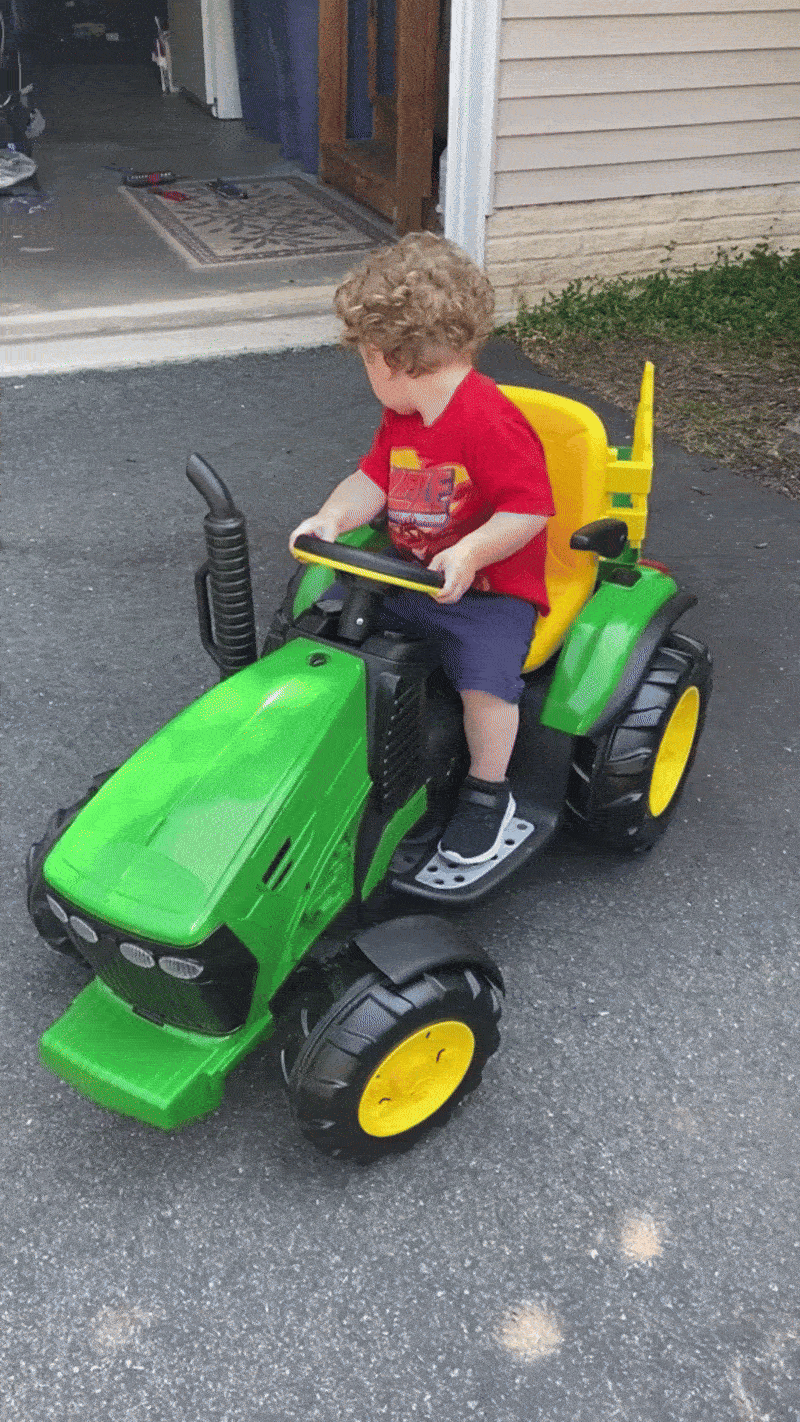 O Trator Elétrico Infantil pode ser dirigido pela própria criança, usando o volante e os pedais — o que estimula autonomia e coordenação.